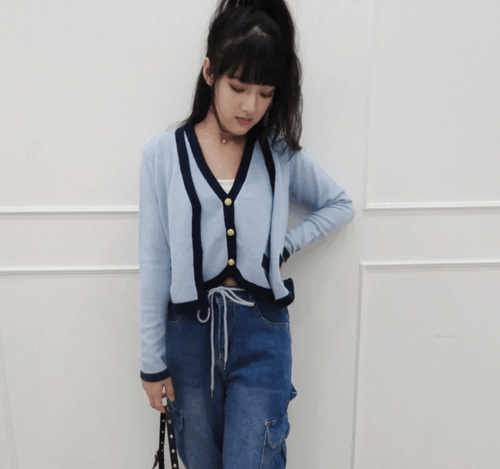 柔霧藍結合深藍滾邊,展現俐落又溫柔的學院氣息。