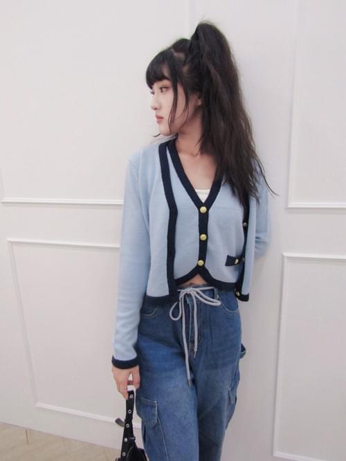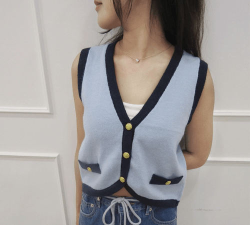 兩件式設計內含V領背心與開襟針織外套,單穿或成套皆具造型感,