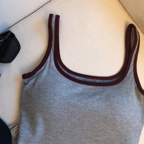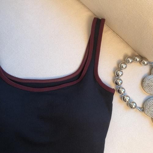 特點:撞色滾邊設計/自帶胸墊設計/羅紋針織布料