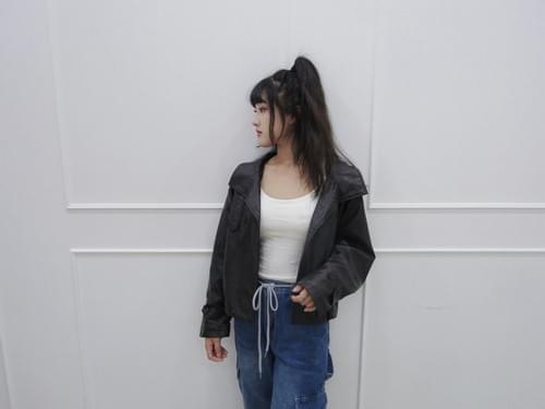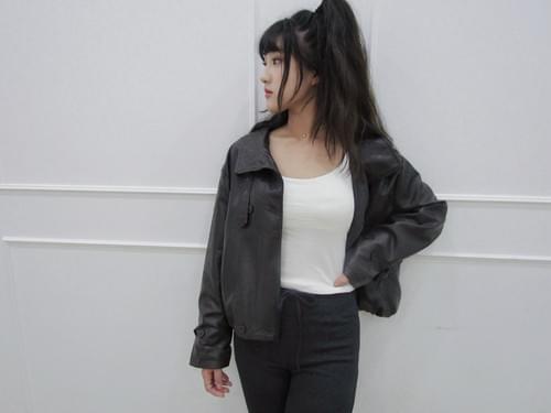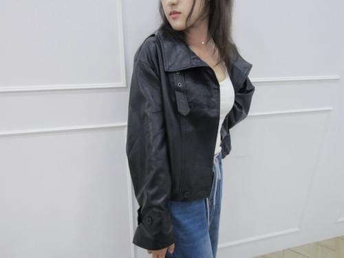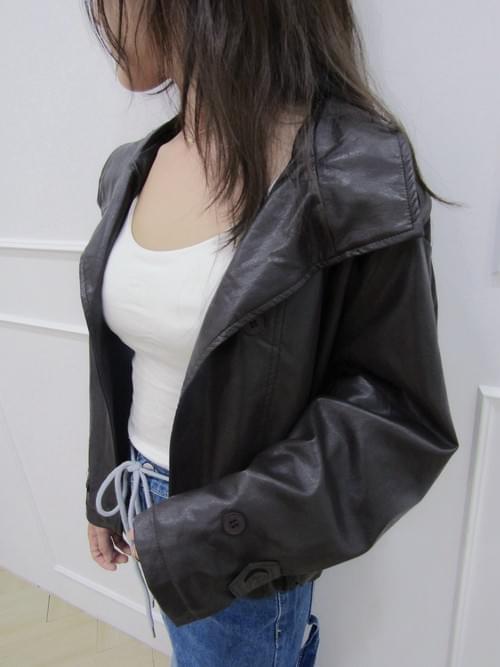 柔軟皮質手感/立領+雙排釦細節/短版修飾身形