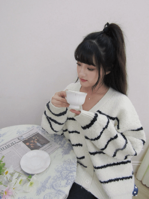 簡約米白底色搭配不規則條紋,營造法式隨性氛圍。