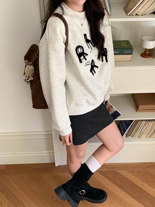特點:立體毛絨刺繡印花/柔軟厚磅棉料/寬鬆落肩剪裁