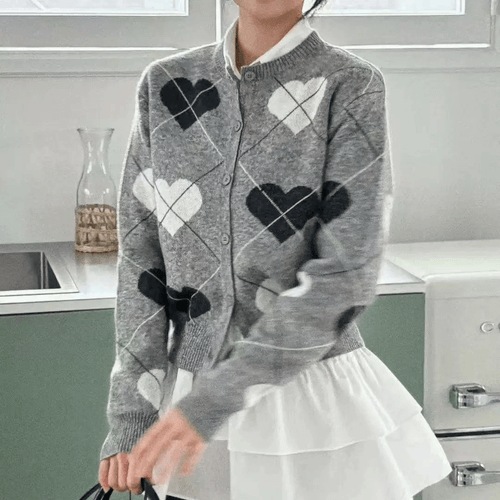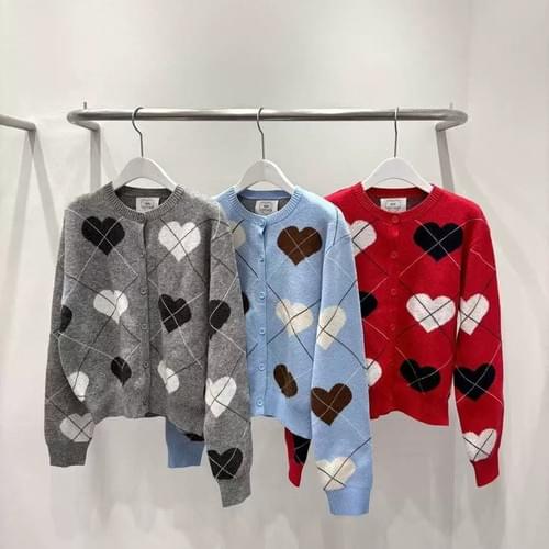 愛心菱格針織外套