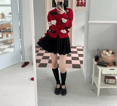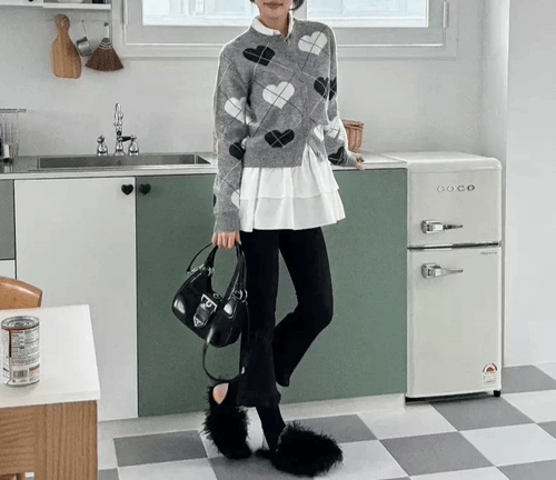 特點:滿版愛心菱格紋/柔軟親膚針織/版型略寬好搭配