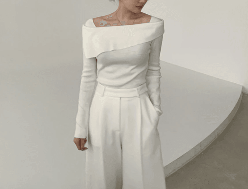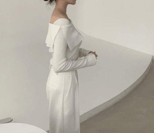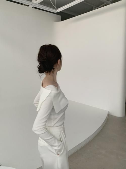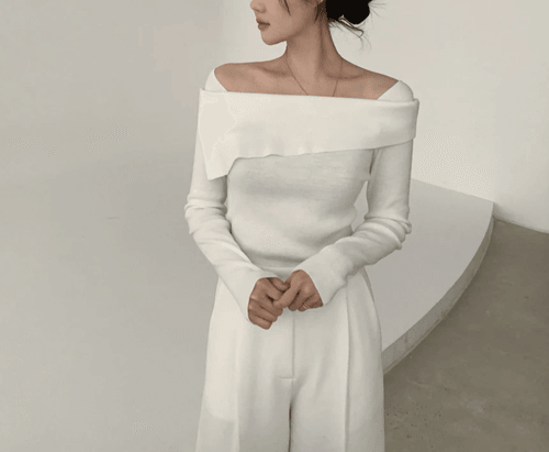 展現優雅與氣質兼具,採用簡約一字領設計修飾鎖骨線條,