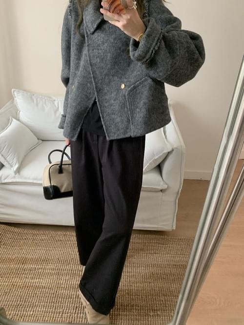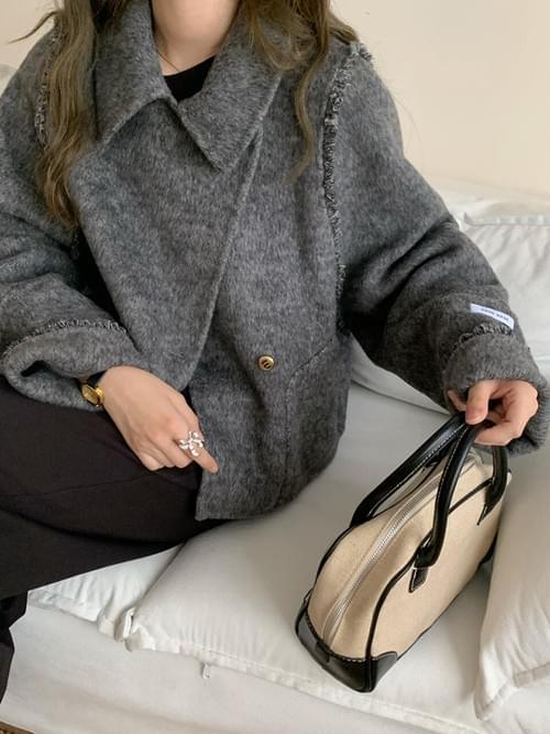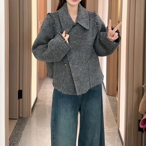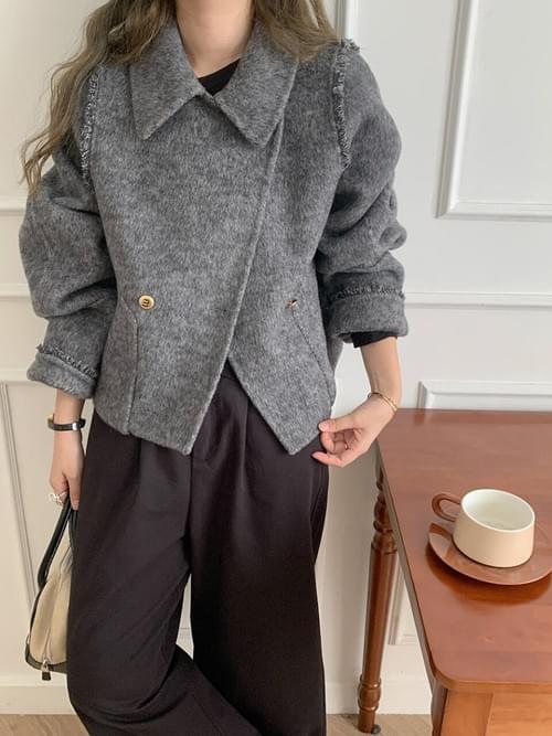 特點:立體翻領設計/毛邊層次細節/短版修飾剪裁