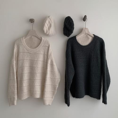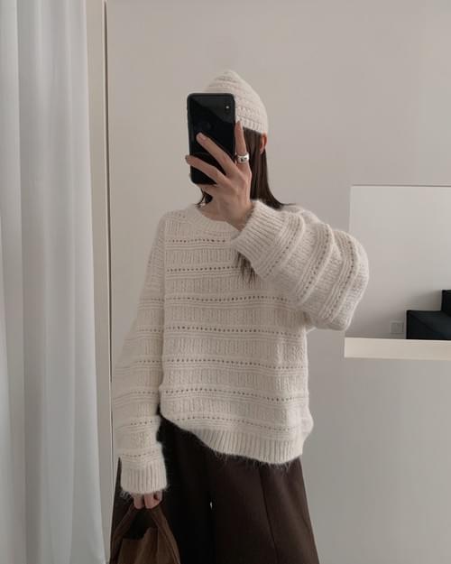 簍空針織毛衣(附帽子)